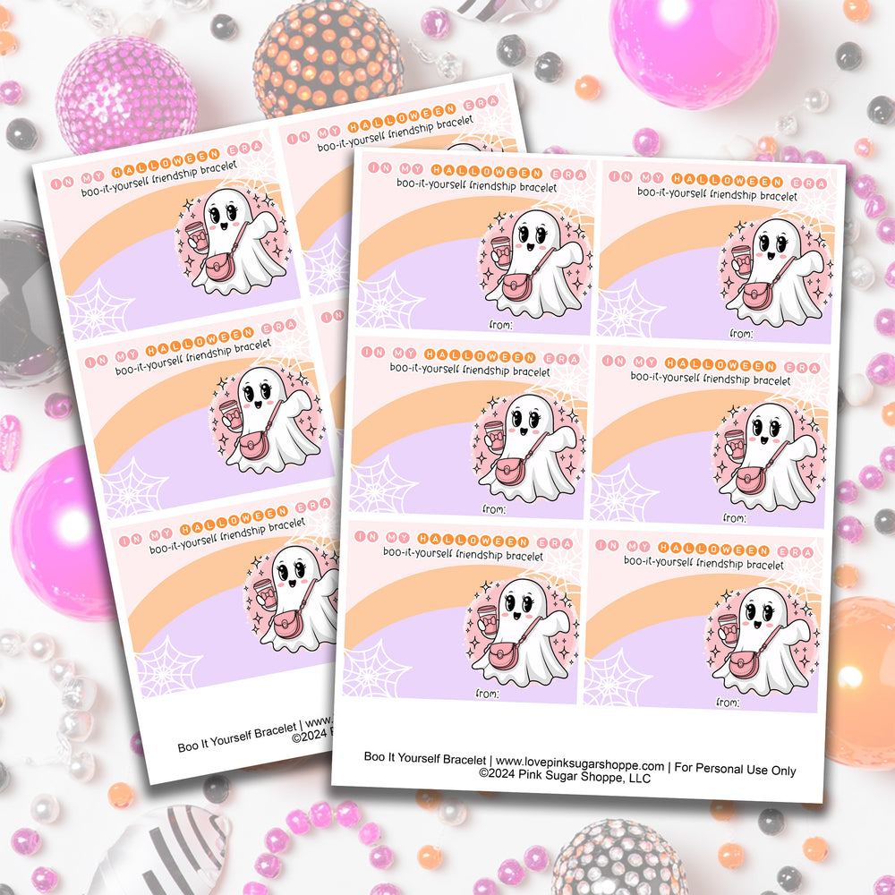 Halloween Era Friendship Bracelet Cards - Classroom Favors - Class Treats - Girly Halloween - School Exchange - DIY Halloween - Boojie Ghost